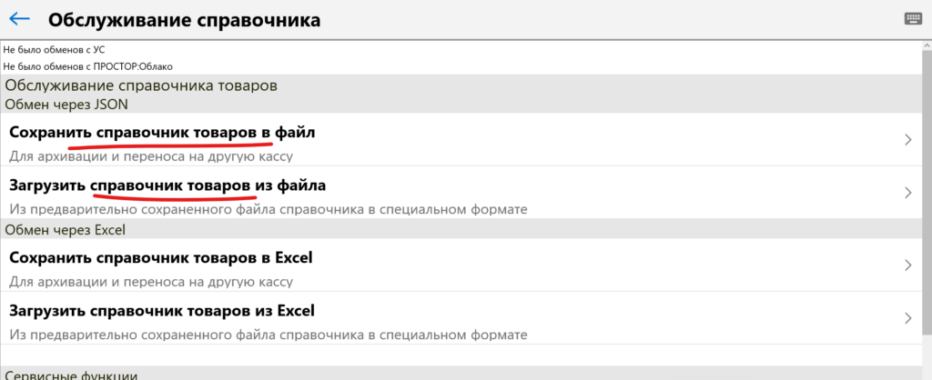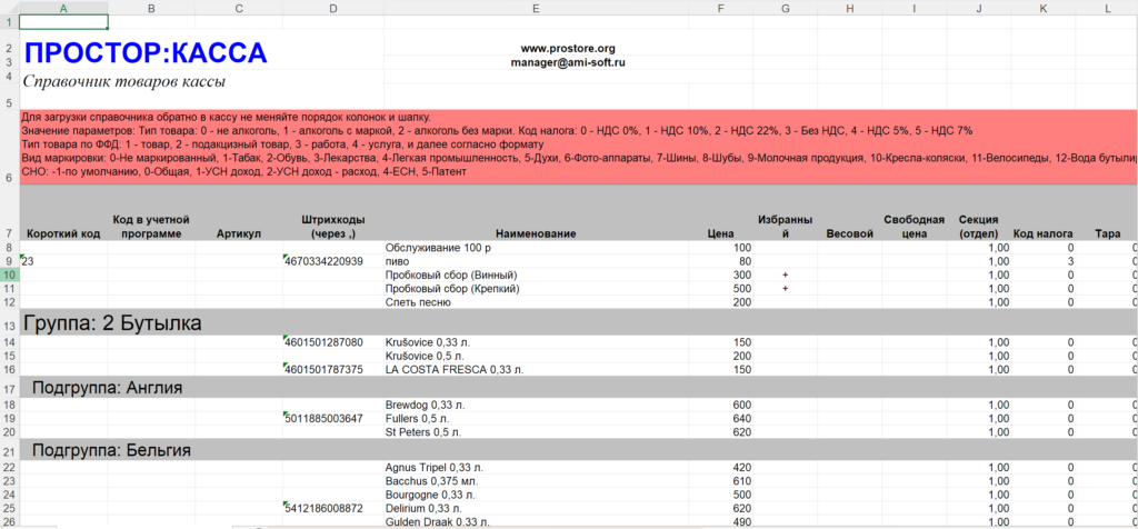 ПРОСТОР:КАССА поддерживает выгрузку-загрузку справочника товаров через Excel.