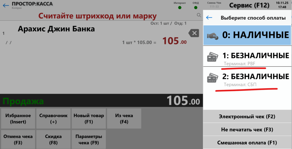 Как выглядит выбор оплаты в кассе #