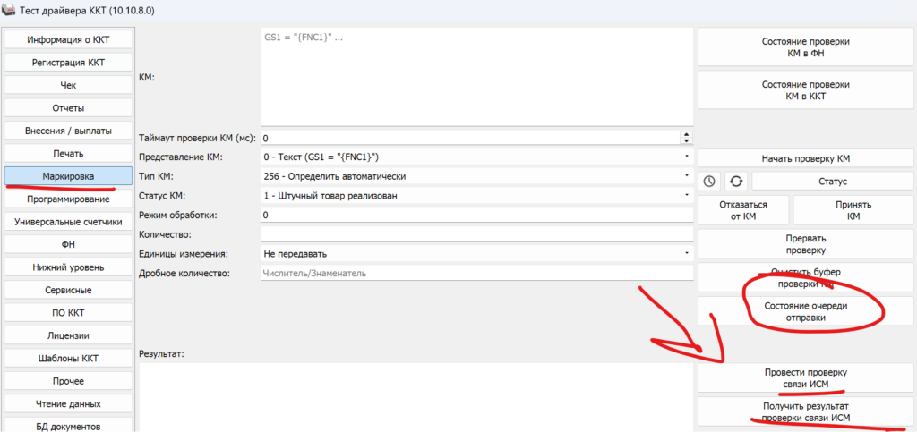 Проверьте связь с ИСМ через закладку «Маркировка«